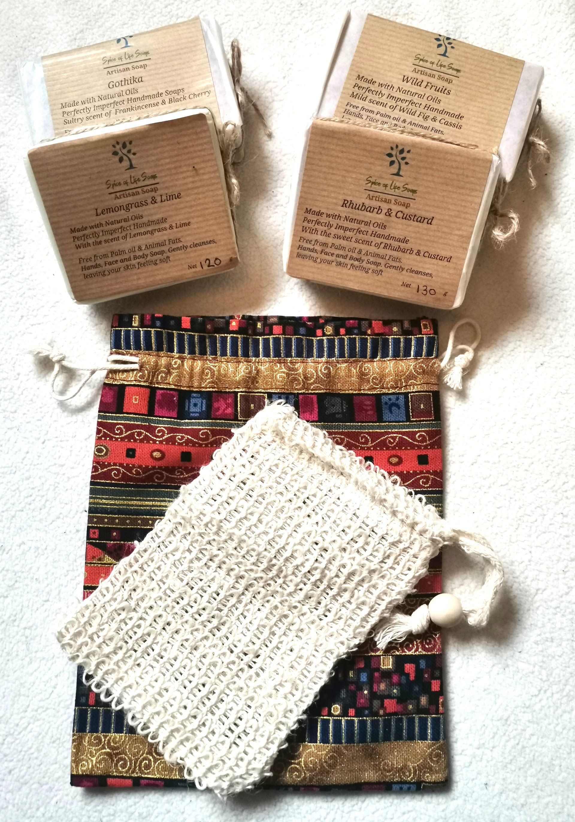 Soaps Moisturising and cleasing leaving your skin feeling soft and clean with a bubbly lather. Made with natural oils, Mango Butter, Cocoa Butter, Shea Butter, Peach Oil, Olive Oil, Castor Oil with different fragrances to suit your senses. Fragrance Free options are Oat Milk Soap & Seaweed Soap which mildly exfoliates. I also sell complimentary soap bags which also exfoliates your skin and a drawstring that loops on your wrist to stop the soap from dropping in the bath and produces a creamy lather from the soap